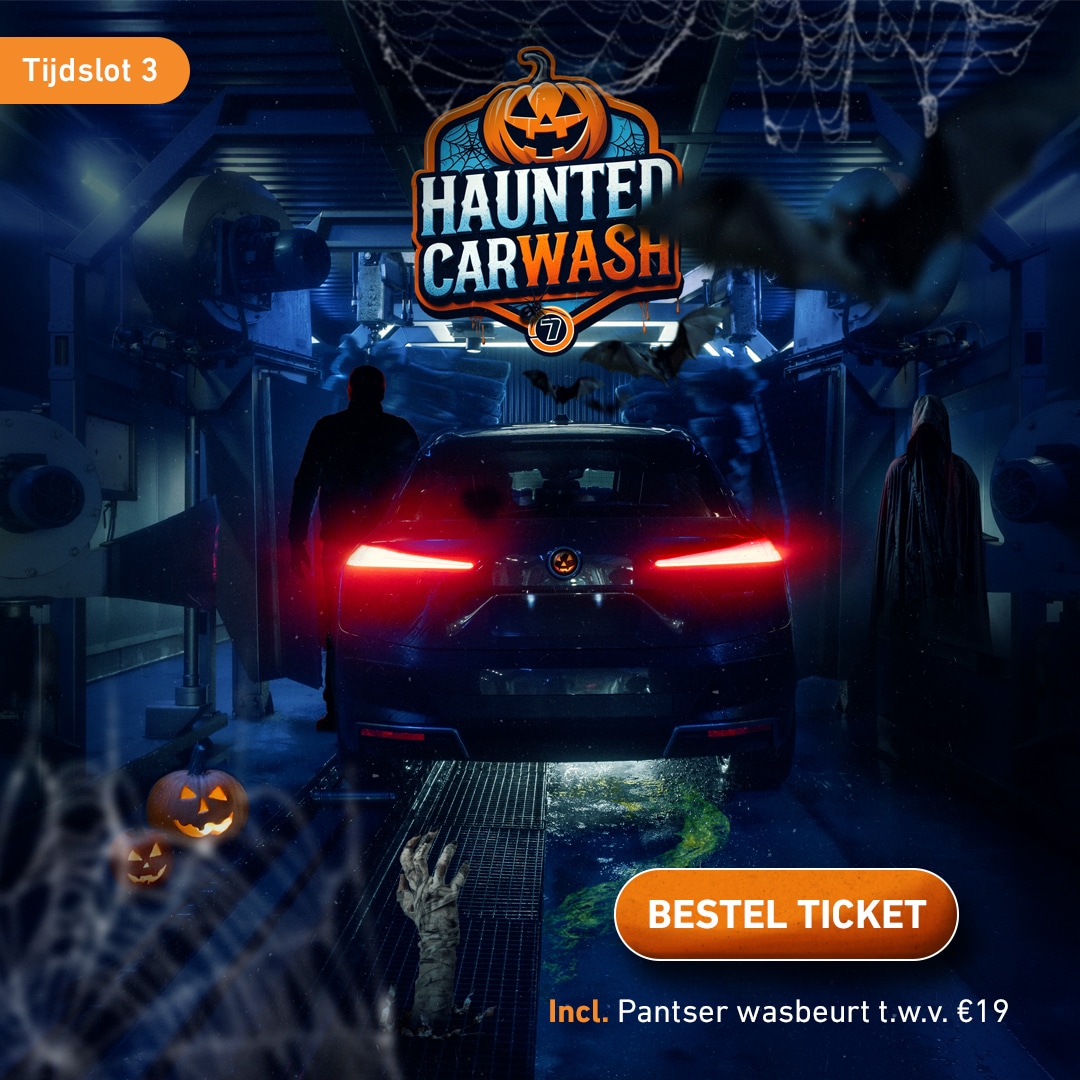 Stap in voor een angstaanjagend schone rit tijdens onze Haunted Carwash! Je krijgt het beste wasprogramma t.w.v. €19,00 én rijdt dwars door een griezelige Halloween-beleving die je niet snel vergeet.